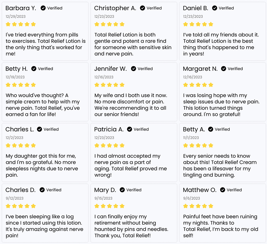 If you check out Total Relief website, you will find tons of reviews from people who’ve added this lotion to their routine, and found it made a meaningful difference in how they feel.